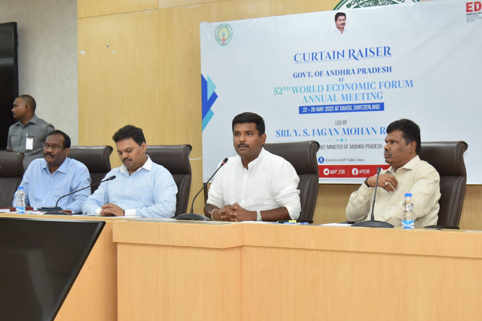 “ప్రజలు , పురోగతి , అవకాశాలు” అనే నేపథ్యంతో ప్రపంచ వేదికగా ఏపీలో ఉన్న అపార అవకాశాలను చాటేందుకు ఆంధ్రప్రదేశ్ దావోస్ వెళుతున్నట్లు పరిశ్రమల శాఖ మంత్రి అమర్ నాథ్ వెల్లడించారు. వెలగపూడి సచివాలయంలోని 5వ బ్లాక్ లో నిర్వహించిన కర్టెన్ రైజర్ కార్యక్రమంలో పరిశ్రమల శాఖ మంత్రి అమర్ నాథ్ లోగోను ఆవిష్కరించారు. ముఖ్యమంత్రి అందించిన ప్రజాకేంద్రీకృత పాలనకు సాక్ష్యంగా ఈ ఏడాది ప్రత్యేక లోగోను తీర్చిదిద్దినట్లు ఆయన స్పష్టం చేశారు. అనంతరం ఆంధ్రప్రదేశ్ ప్రభుత్వ “సుస్థిర అభివృద్ధి లక్ష్యాలను” దశదిశలా చాటే విధంగా రూపొందించిన బుక్ లెట్ ను కూడా మంత్రి అమర్ నాథ్ ఆవిష్కరించారు. ప్రజా సంక్షేమమే ధ్యేయంగా ప్రపంచంలోనే ఆంధ్రప్రదేశ్ రాష్ట్రం కొత్త ఒరవడికి శ్రీకారం చుడుతూ చెప్పింది చెప్పినట్లు అమలు చేసిన నవరత్నాలు, పర్యావరణం, సాంఘిక సంక్షేమం, సుపరిపాలన వంటి 9 రంగాలతో కూడిన అంశాలకు ఈ బుక్ లెట్ లో ప్రాధాన్యమిచ్చినట్లు మంత్రి పేర్కొన్నారు.